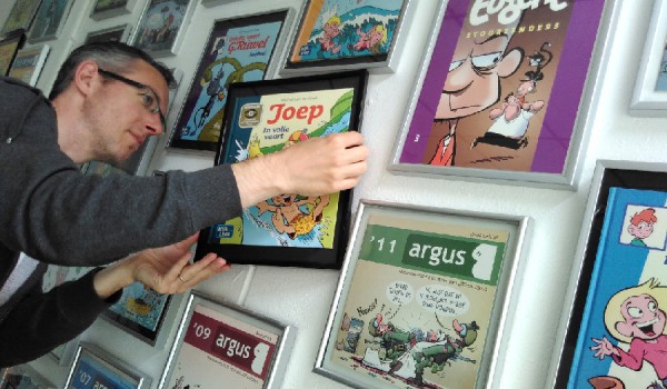 Op de studio hebben we de traditie om elk nieuwe stripalbum ingelijst op te hangen. Inmiddels is het al een aardige collectie aan het worden.