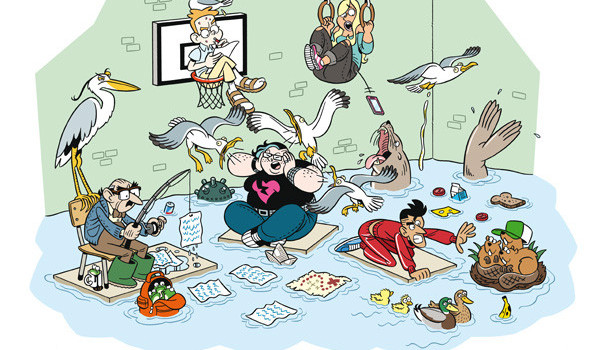 Sinds mensenheugenis -en dan met name dat deel van de mensheid dat dit jaar eindexamen doet- verzorgt Studio Noodweer de poster voor de eindexamenklachtenlijn van het LAKS. En ook dit jaar valt er voor het inmiddels bekende clubje scholieren op de poster weer voldoende te klagen. En hopelijk in het echt ook, want dan kunnen Rob en Jordi volgend jaar weer een nieuw tafereel aan deze serie toevoegen!
