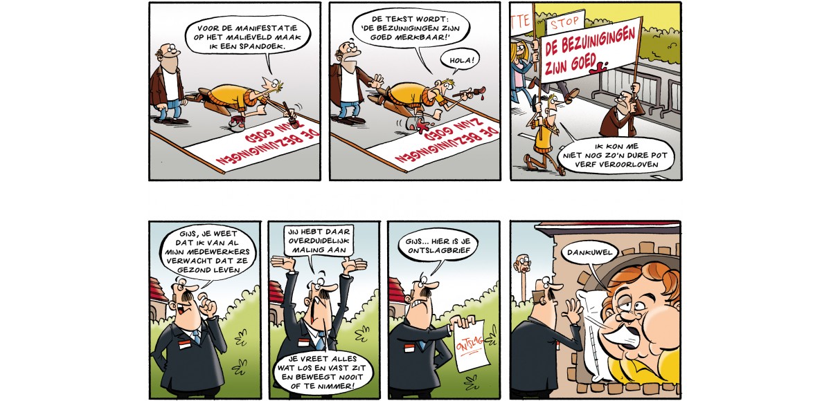 Zijn jarenlange ervaring zet hij ook graag in om de boodschap van zakelijke opdrachtgevers te verpakken in een pakkende cartoon, strip of illustratie.
